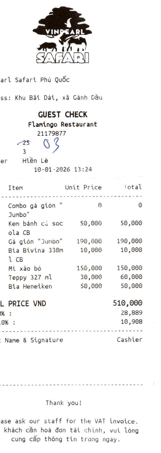 버거 + 하이네켁 + 얼음(무료) 로 41만동 지출